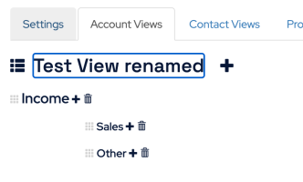 If you wish to rename a view, group, or subgroup, click on the name and overwrite it. These functionalities are available for both Contact views and Product views.